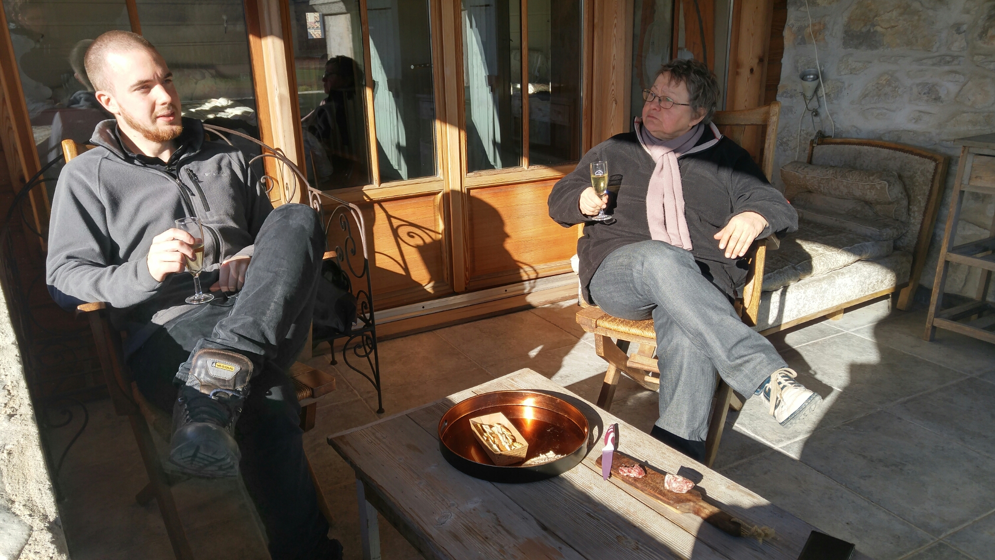 Vendredi, jour 6, nous sommes allés voir la ville intérieure de Ruoms, pris l’apéro sur la terrasse et avons préparé notre stock, pcq nous quittons demain matin très tôt pour Avignon (en bus), puis Montpellier (en train). Là, nous dormons chez nos premiers Warmshowers, une famille très inspirante qui fait des voyages à vélo (avec les trois enfants!).