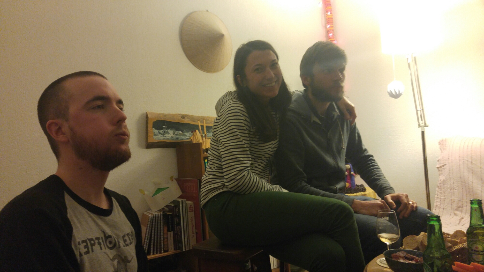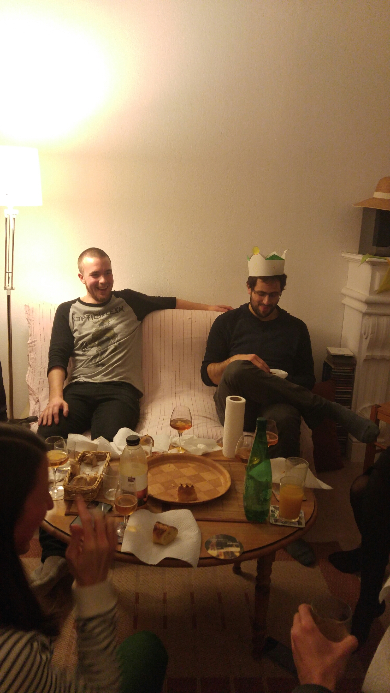 En début de soirée, nous nous rendons chez nos warmshowers, Lucie et Pierre-Marie, qui ont un superbe appartement et un superbe chat 🙂 Nous passons donc la soirée avec eux et leurs amis, qui sont venus poursuivre la tradition de la galette des rois.