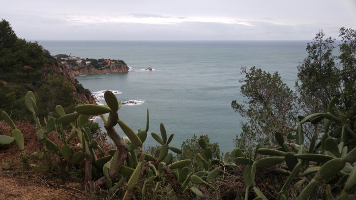 Nous sommes partis de Platja d’Aro pour essayer le chemin qui longe la côte jusqu’à Blanes; paraît que c’est vraiment beau, qu’ils disent encore. Seulement ça monte beaucoup, beaucoup trop pour mes petites jambes (et ma tête) qui refusent de forcer aujourd’hui.