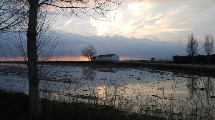 Après ce petit dej félin improvisé, nous continuons notre route vers le côté sud-est du delta, où on s’est un peu fait prendre par surprise par l’état du chemin (que de la bouette… Nos vélos sont dans un état lamentable). On fait donc demi-tour, un peu déçus, un peu découragés.