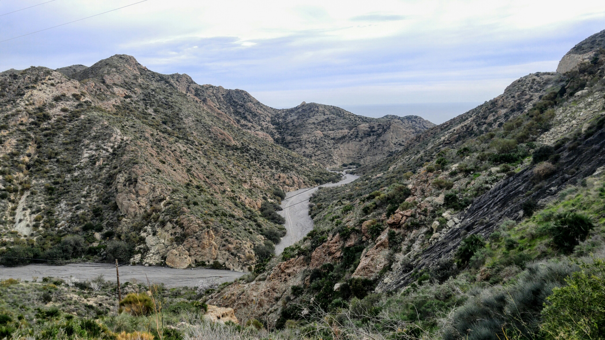 Nous descendons donc les derniers kilomètres les freins dans le tapis, en espérant ne pas être emportés par le vent. Arrivés à destination, nous trouvons notre camping, enclavé dans les montagnes, sur le bord de l’eau. Il vente toujours, mais au moins nous sommes en sécurité 🙂 en plus, paraît qu’il y a un bus demain matin 7:40 pour Almería. J’espère du plus profond de mon cœur que le chauffeur acceptera nos vélos!