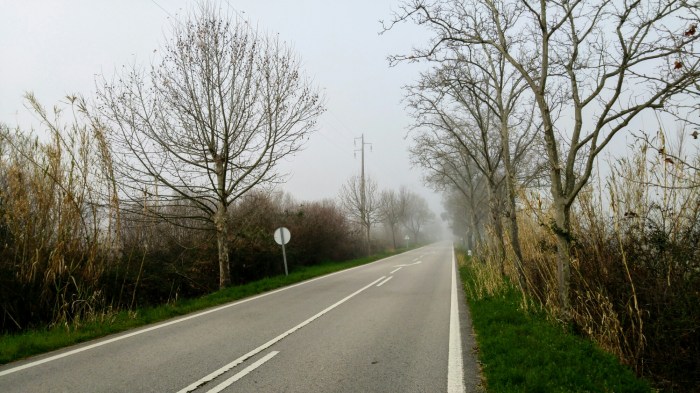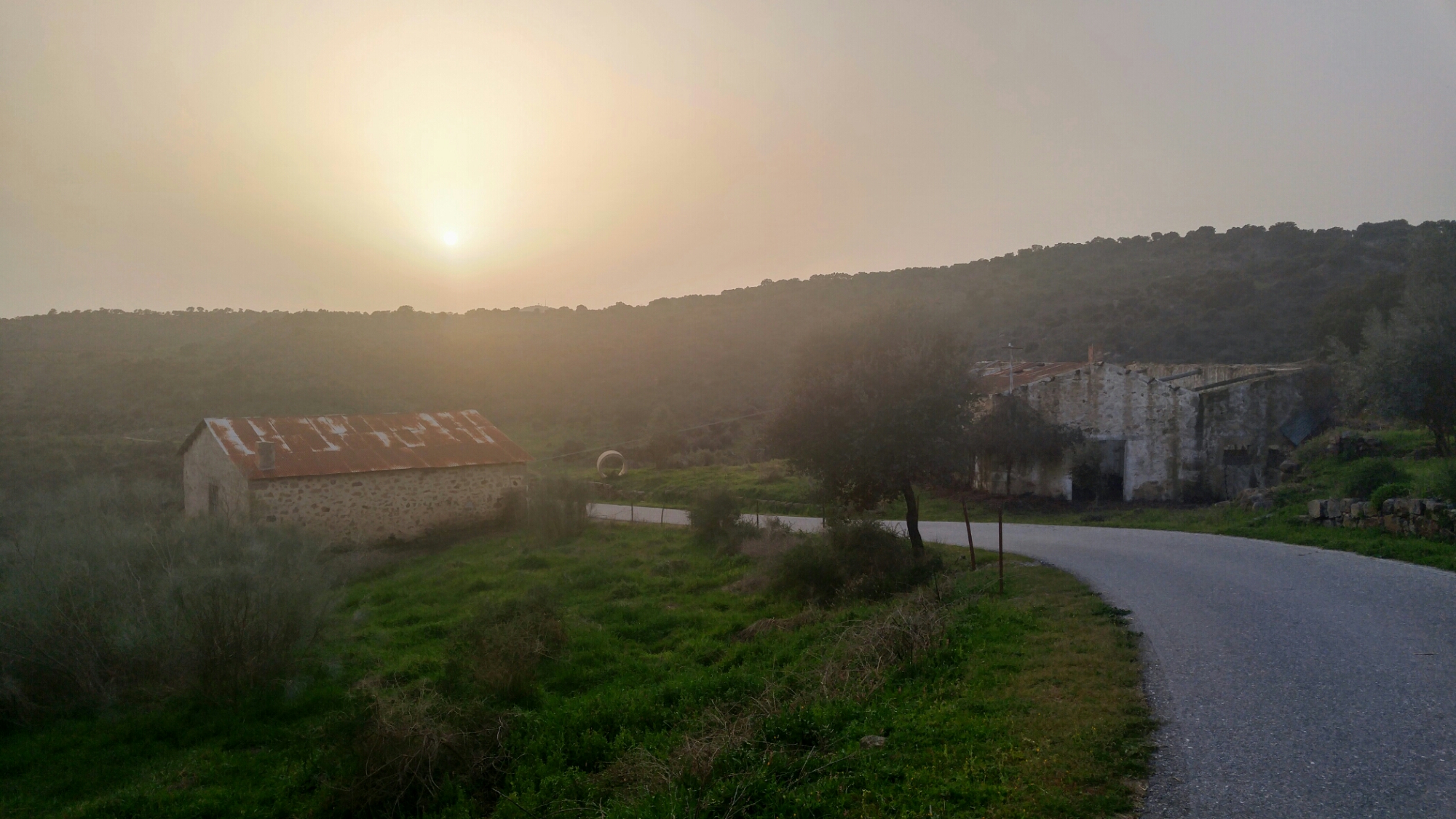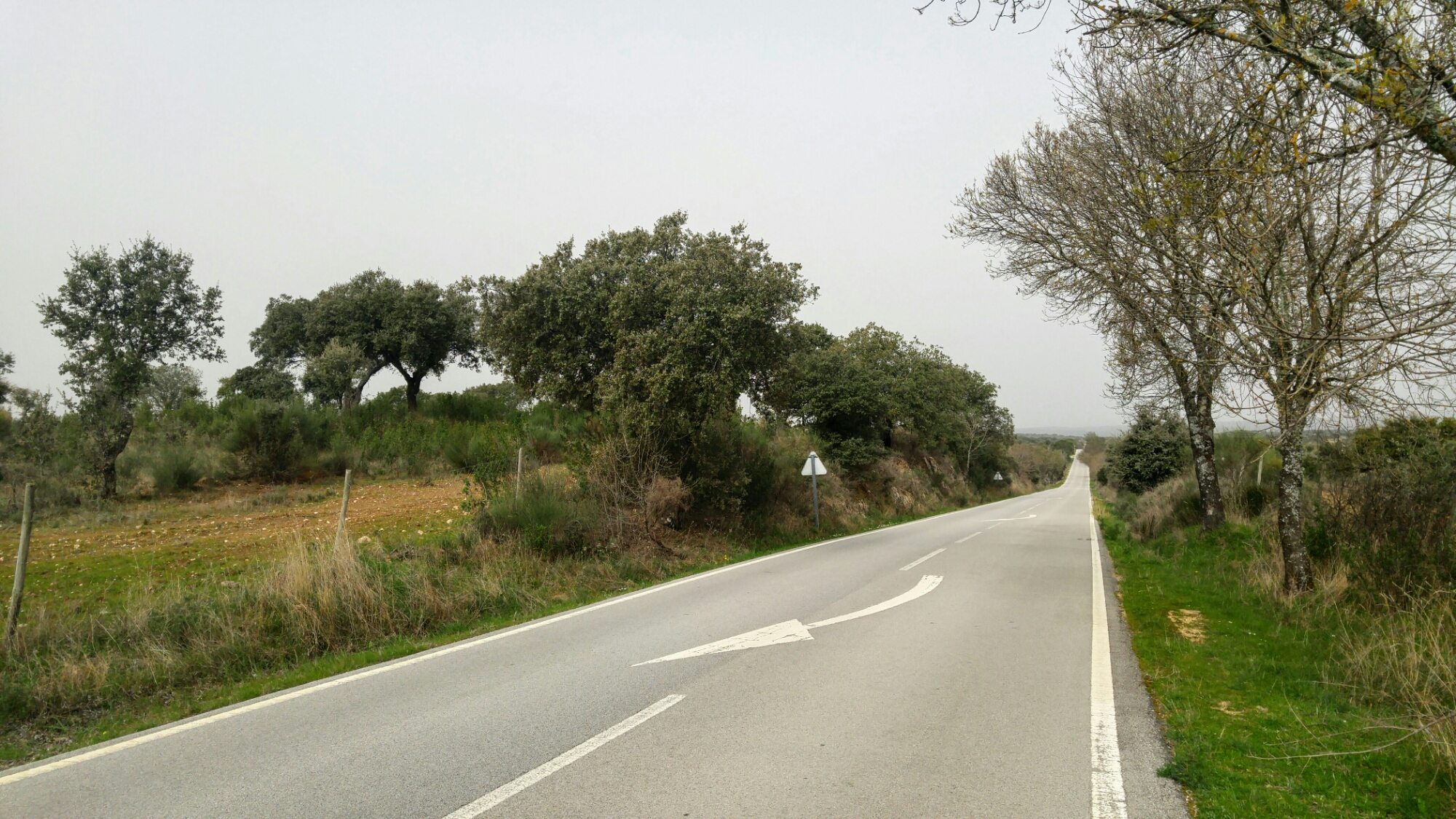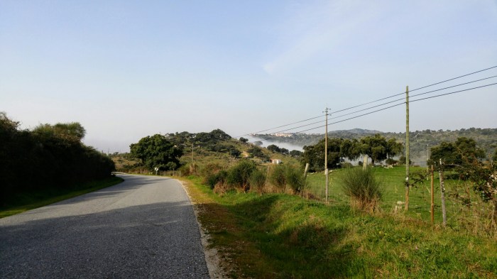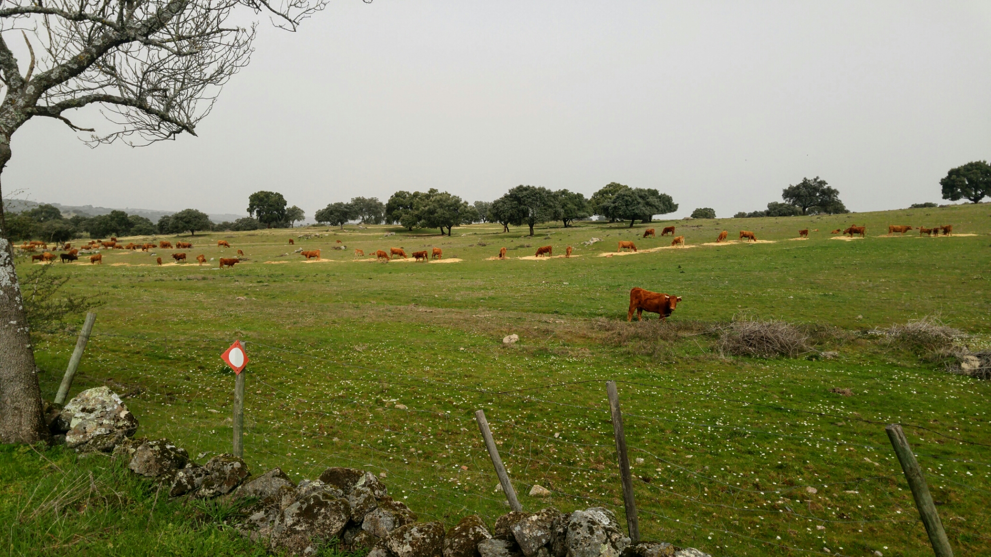 Le territoire sur lequel nous nous trouvons est vraiment splendide. Collines à perte de vue, animaux de la ferme qui se prélassent dans l’herbe, plantations de chêne-lièges, petits ruisseaux… et toujours cette espèce de brume étrange. C’est merveilleux, bucolique, pittoresque, authentique; on trippe vraiment!