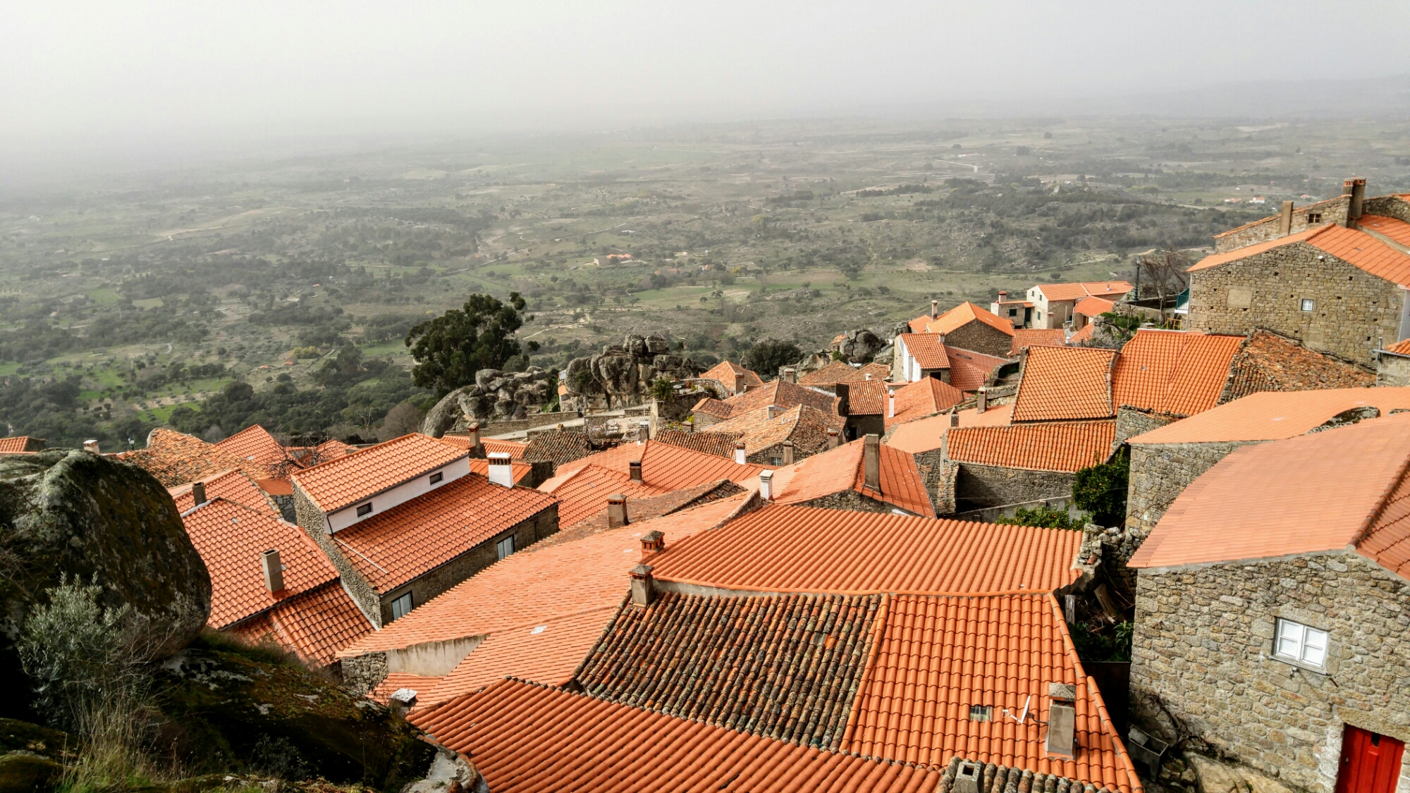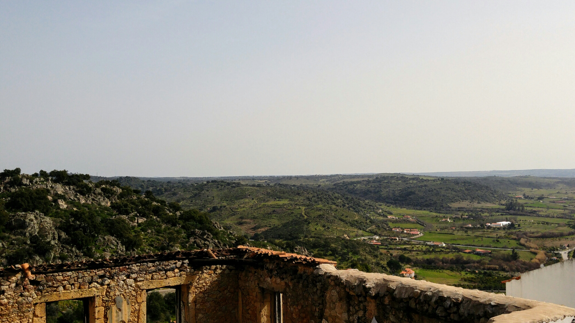 Au premier plan, Idanha-a-Vela et, haut perchée dans les nuages, Monsanto!