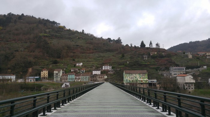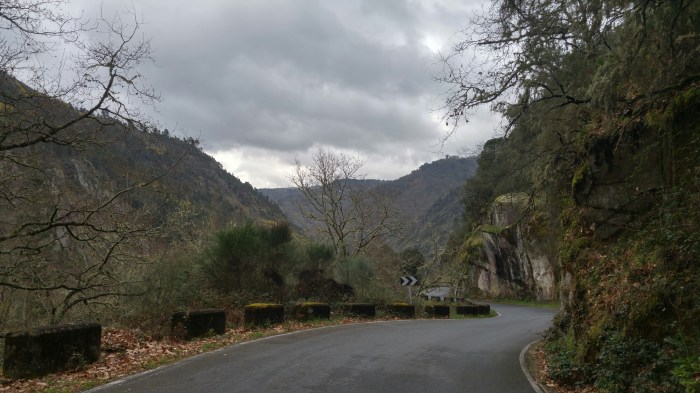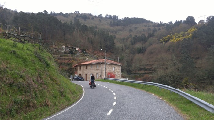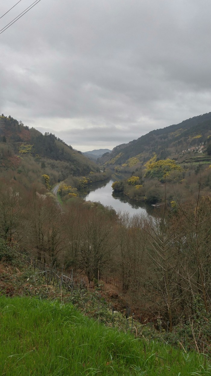 La route est parfaite: nous suivons d’abord le río Miño sur l' »ancienne » route (une autre »route nationale » a été construite récemment, ce qui fait que l’ancienne est très peu utilisée par les voitures et les camions) et traversons quelques villages.