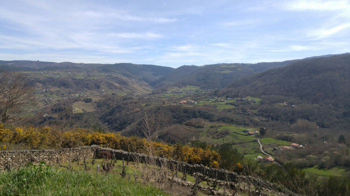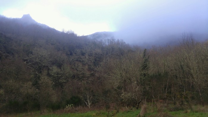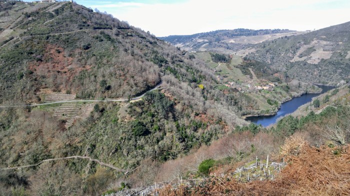 Nous arrivons finalement « en haut » et voyons, sur le sommet voisin, Castro Caldelas, notre première destination, celle où nous voulons manger et faire l’épicerie. Misère de misère, si loin et si près en même temps.