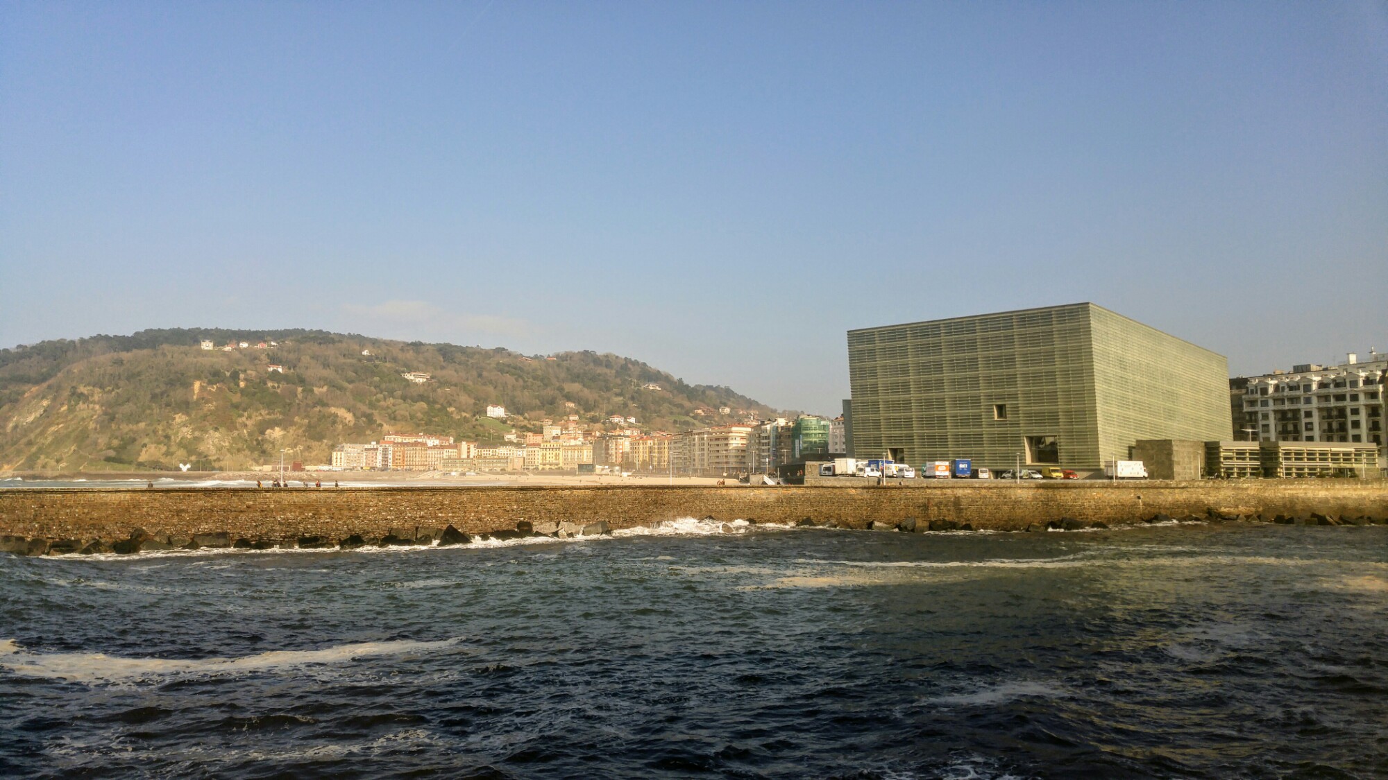 San Sebastian est une super belle ville. À peine sortis de la gare, on sait déjà qu’elle nous plaira. Couverte de pistes cyclables, on peut aller dans toutes les directions sans trop se casser la tête, même avec nos gros vélos. Nous optons donc pour le bord de l’eau, que nous n’avions pas vu depuis plus de deux semaines!