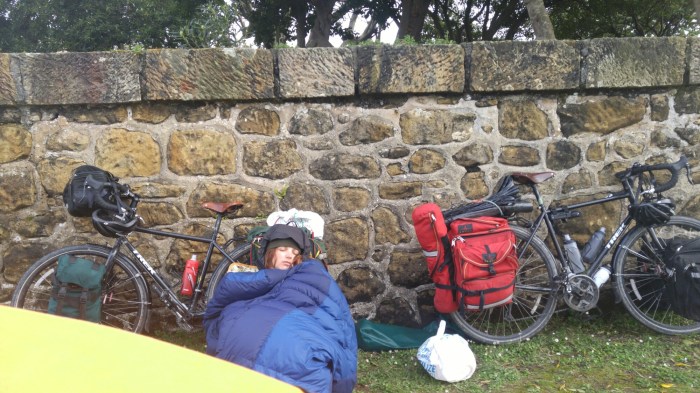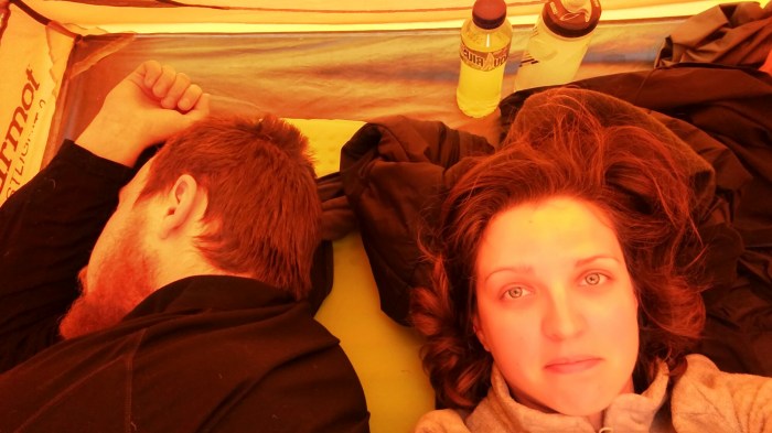 Le lendemain matin, une fois le camp plié, c’est à mon tour d’être malade. On remonte donc la tente et je me reposerai tout l’après-midi. Il fait trop chaud dans la tente, trop froid dehors, jopterai donc pour un compromis…