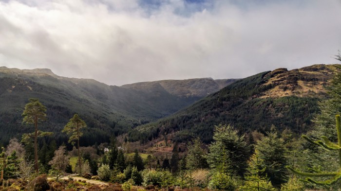 Après notre Scottish Breakfast, nous prenons la route pour le Benmore Botanic Garden, un immense jardin perdu au creux de montagnes.