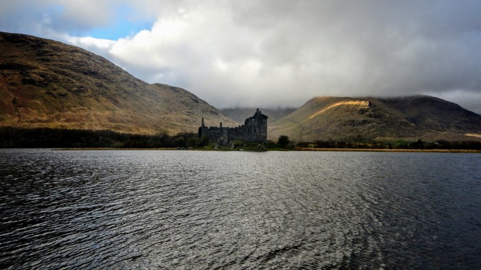 Après cette rencontre très agréable, nous reprenons la route vers Oban, au bord de l’eau. En route, nous nous arrêtons quelques instants pour admirer le Kilchurn Castle et son environnement grandiose.