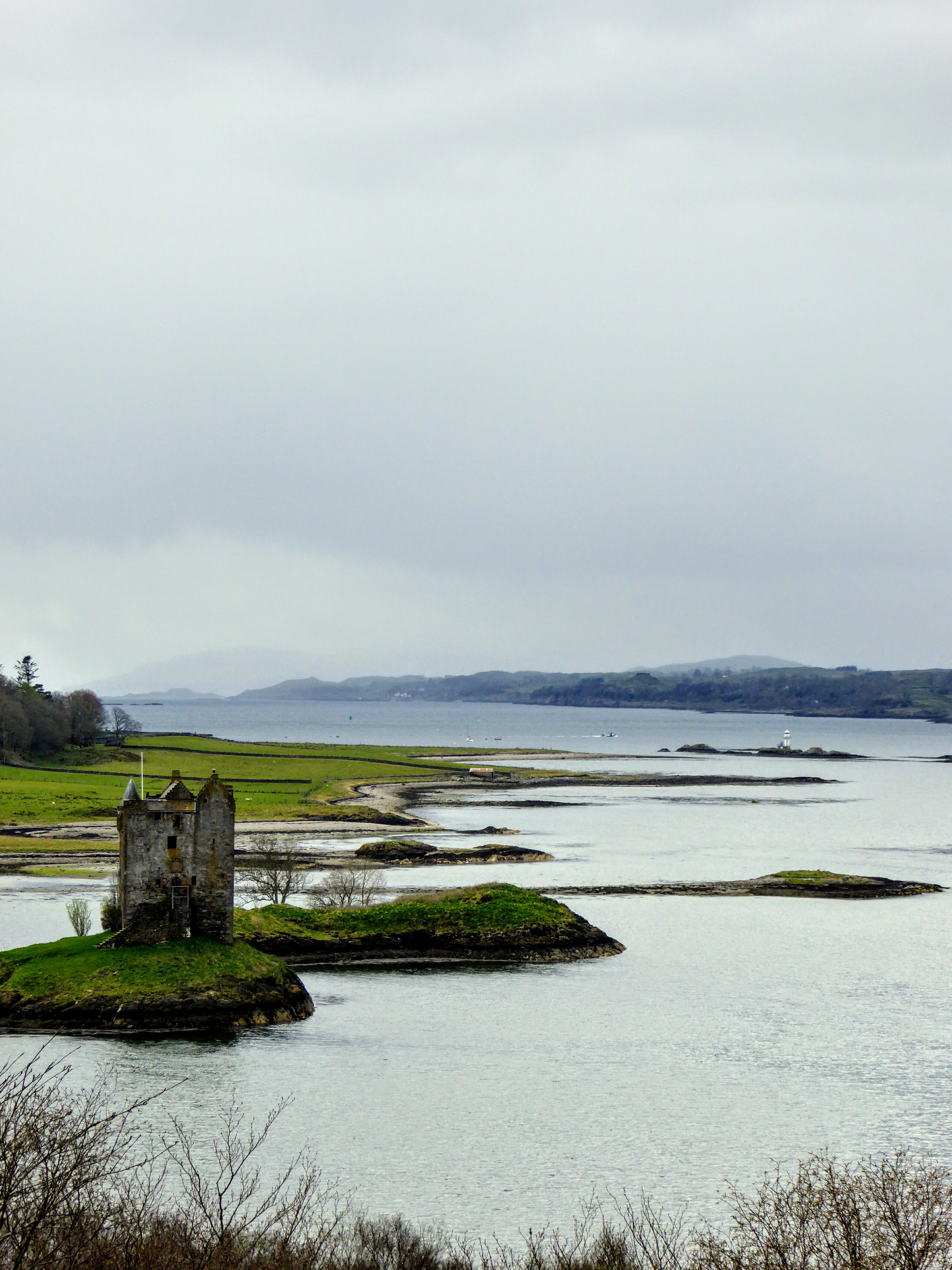 Nous avons ensuite continué notre chemin, en nous arrêtant tout de même pour admirer de loin le Stalker Castle (c. 1320), seul sur son île. C’est là que nos problèmes ont commencé!