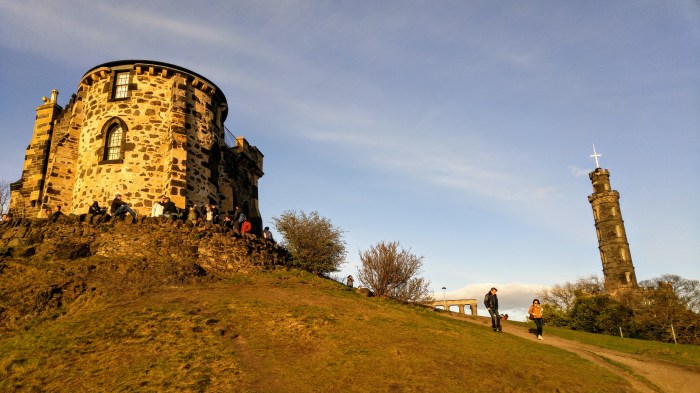 Après ce festin, nous sommes allés marcher sur la plus petite des montagnes d’Édimbourg, pour admirer les monuments qui s’y trouvent, les montagne qui l’entourent et la ville à ses pieds, le tout baignant dans une ambiance dorée, celle du coucher de soleil.