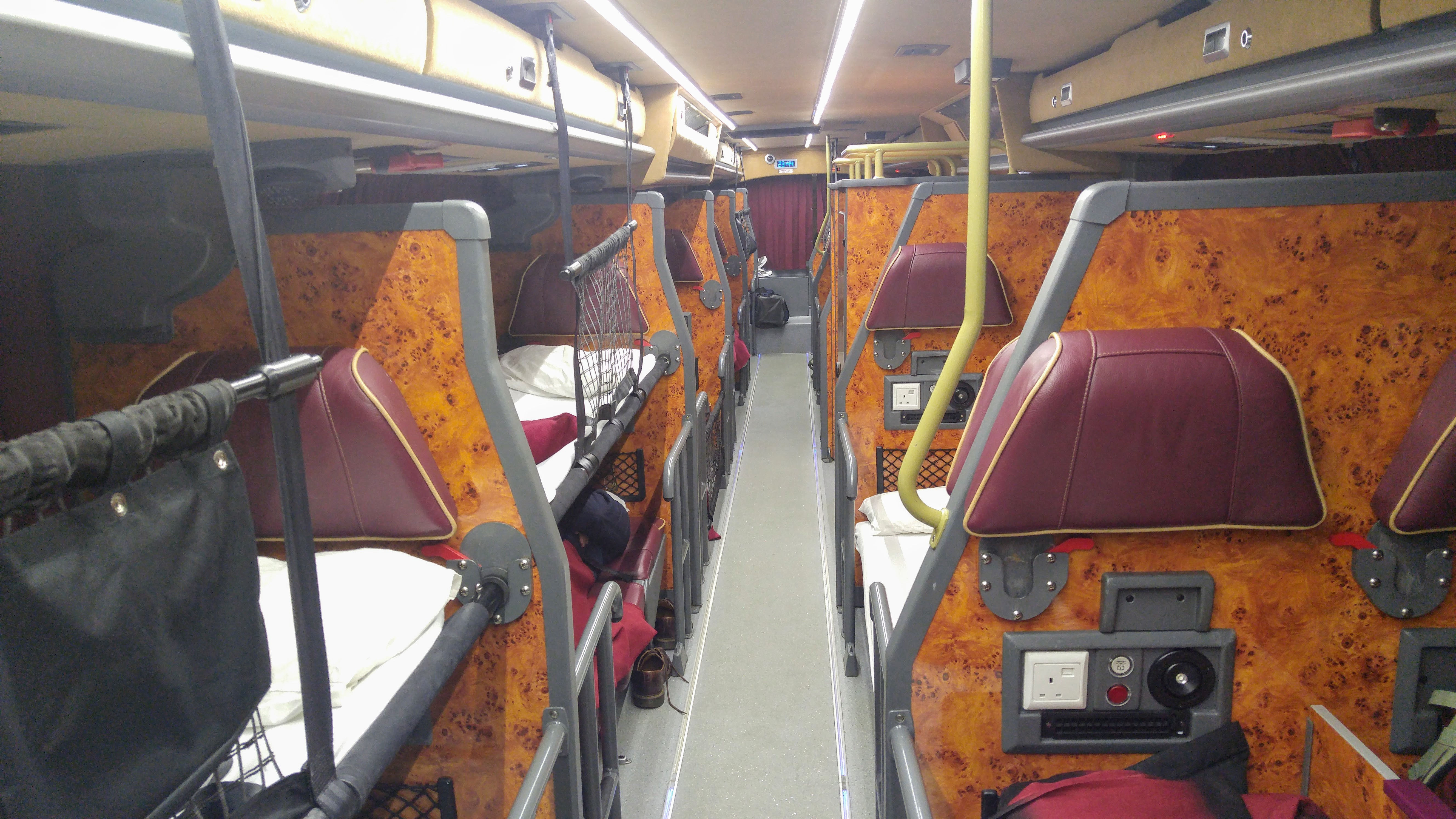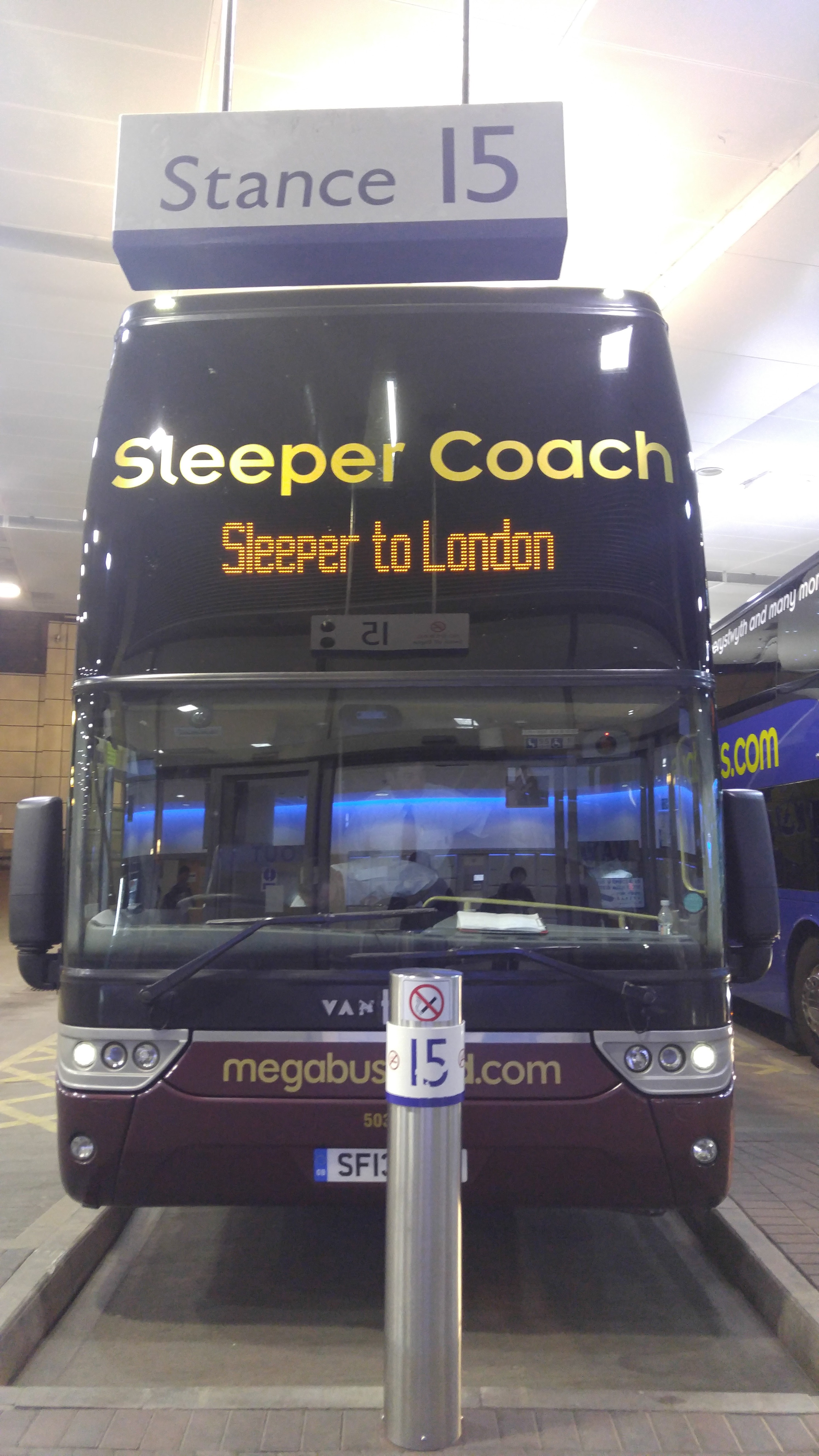 Finalement, nous nous sommes dirigés vers la gare de bus vers 23h, car nous prenons un bus de nuit (de luxe!) pour nous rendre à Londres.