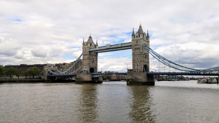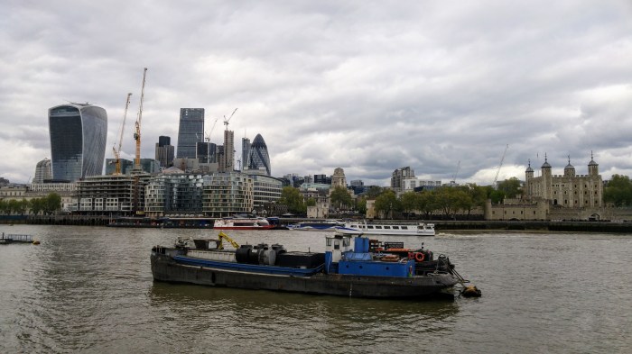 Nous prenons le métro jusqu’au London Bridge, puis marchons au bord de la Tamise jusqu’au Tower Bridge, que nous traversons pour aller voir le Tower Castle, puis différents bâtiments du centre-ville, à l’architecture bien spéciale. Londres ayant été fortement bombardée et détruite durant la Seconde Guerre mondiale, les bâtiments anciens sont moins nombreux qu’ailleurs et l’architecture moderne à pris sa place au coeur de la ville.