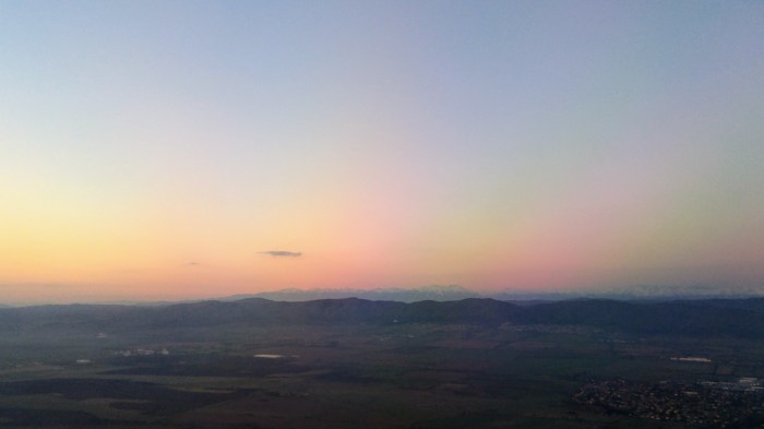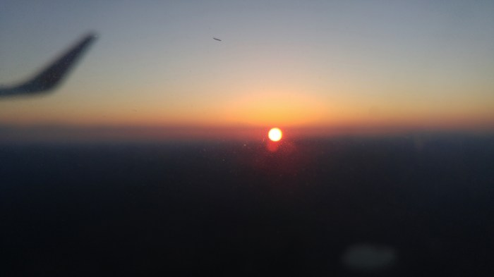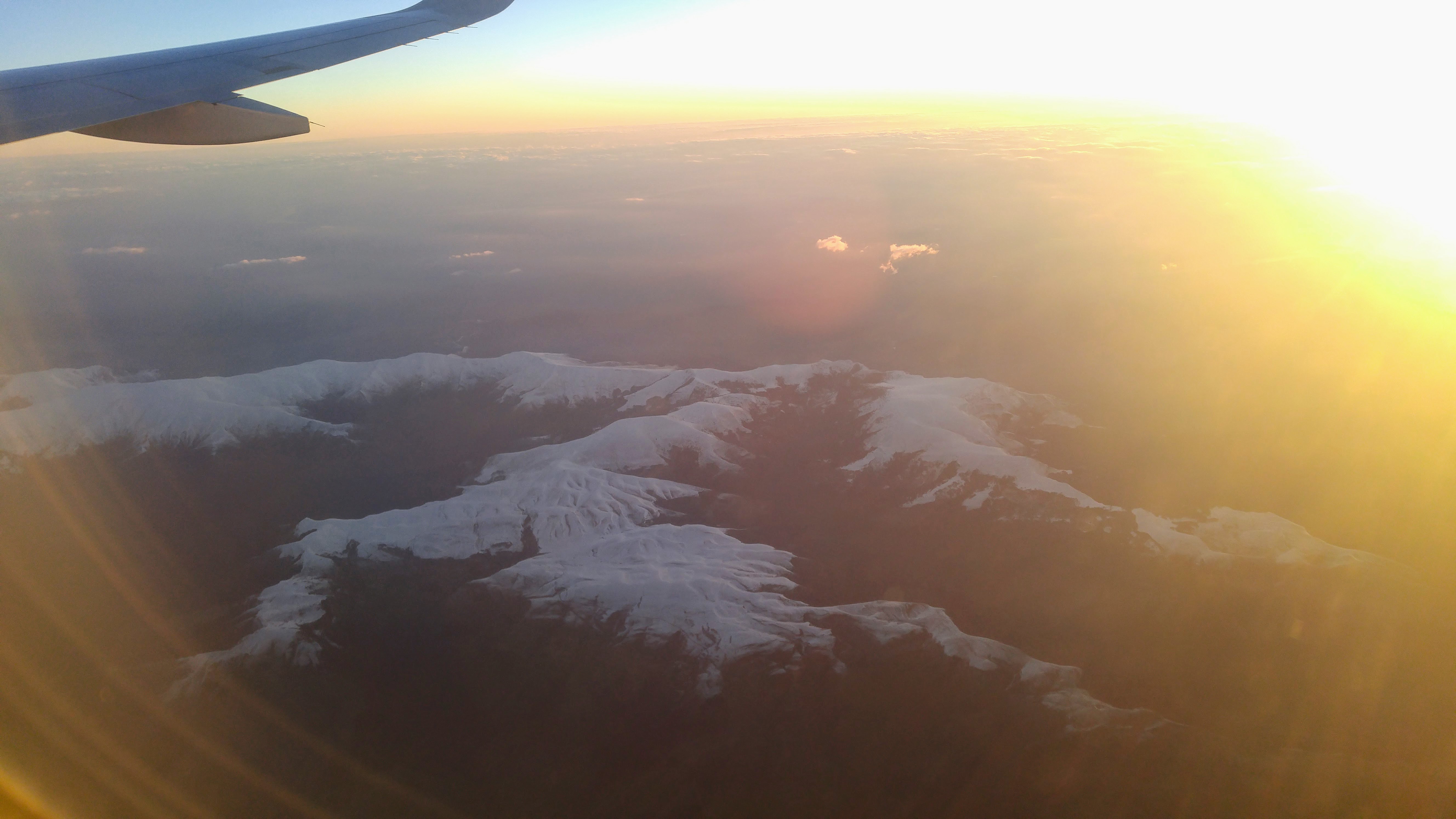 Nous nous envolons au levé du soleil vers la France, voyage au cours duquel nous apercevons d’en haut les sommets enneigés de la Bulgarie.