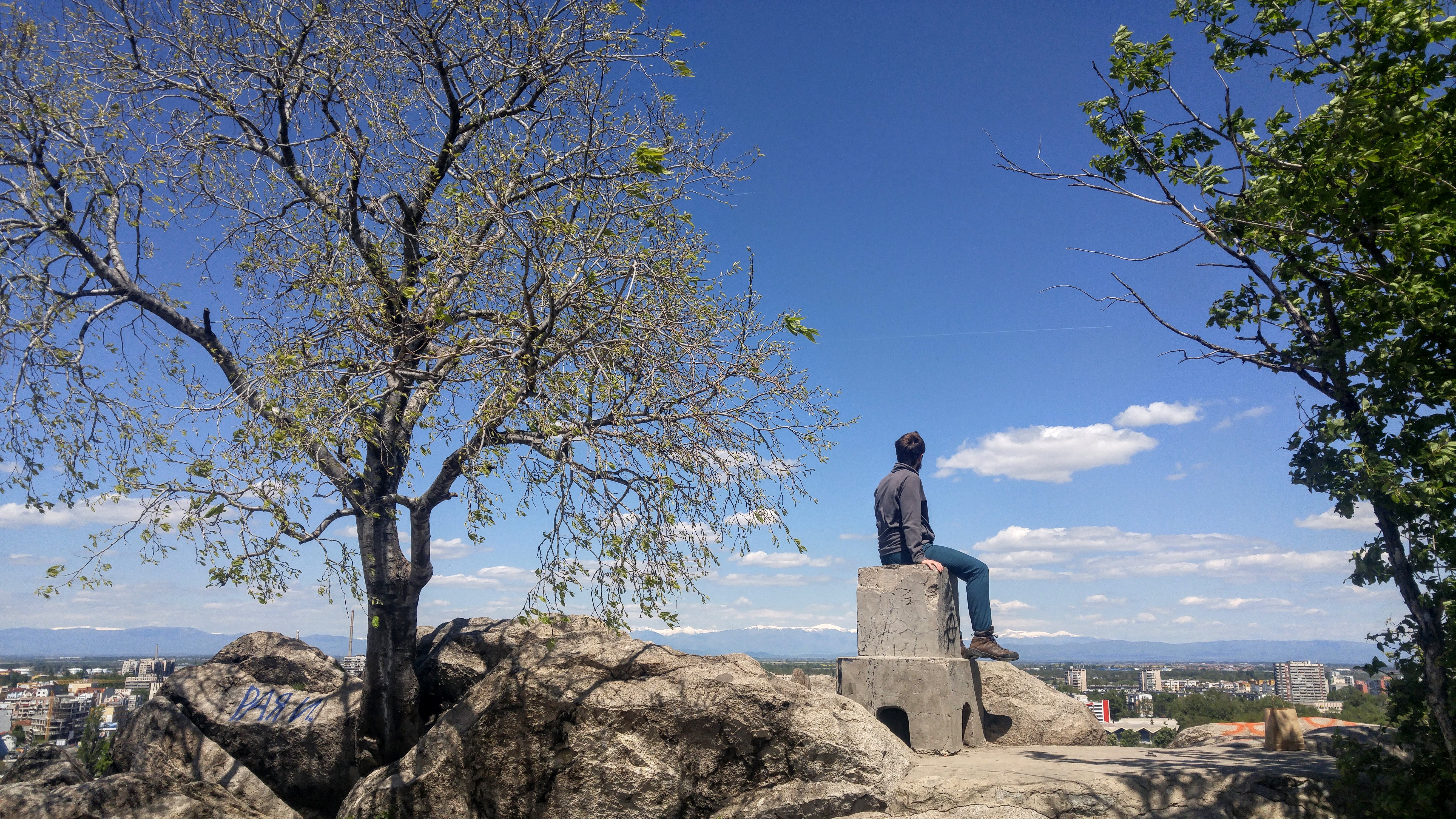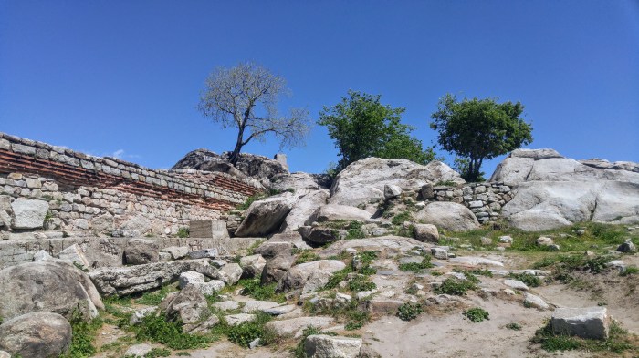 Nous nous sommes rendus au sommet de la colline Nebet Tepe pour découvrir les ruines qui s’y trouvent, qui datent, il me semble, de l’époque des Thraces.